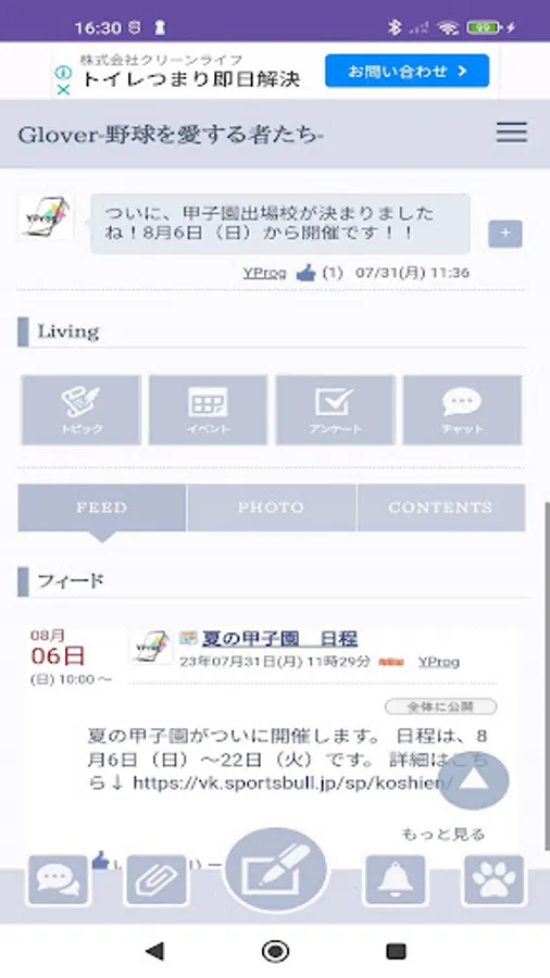 You can share schedules and use the chat function to exchange opinions among baseball lovers.