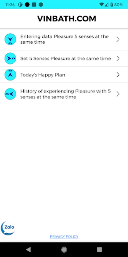 - 3. Why use this app? Since people cannot remember all of their interests at once during their lifetime, this app is needed to record new likes and recall memorized likes to suggest users the Plan of future experiences in accordance with individual user preferences by each sense. The resonance of the likes of all 5 senses at the same time will create a feeling of extreme excitement called " Joy " for the user. This App is also recommended when using VINBATH Smart SofaBath and Bathtubs, to help users achieve the experience of " Bliss of 5 senses at once".