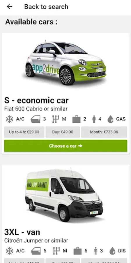 Access to mobile data: all information about cars, tariffs, etc. will be loaded from the app2drive servers.