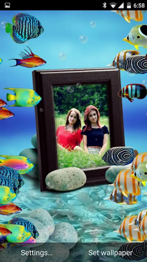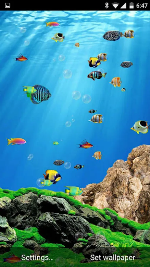 We are introducing most creative and many features aquarium live wallpaper for free download. It's low battery usage and easy to use with animated fish and air bubbles. Realistic and Colorful fish's swims on sea backgrounds. Fishes cab be animate and move faster when we touch on it. In this free aquarium live wallpaper, we have 3 main options to set as live wallpaper.