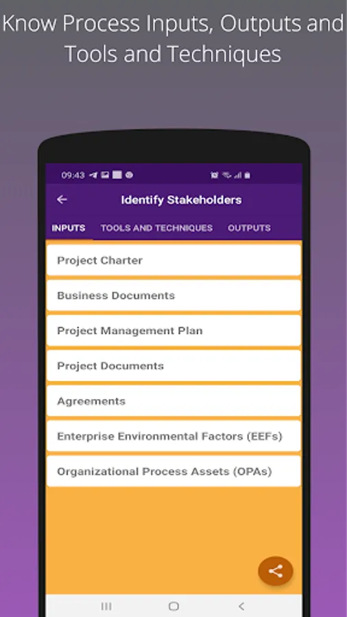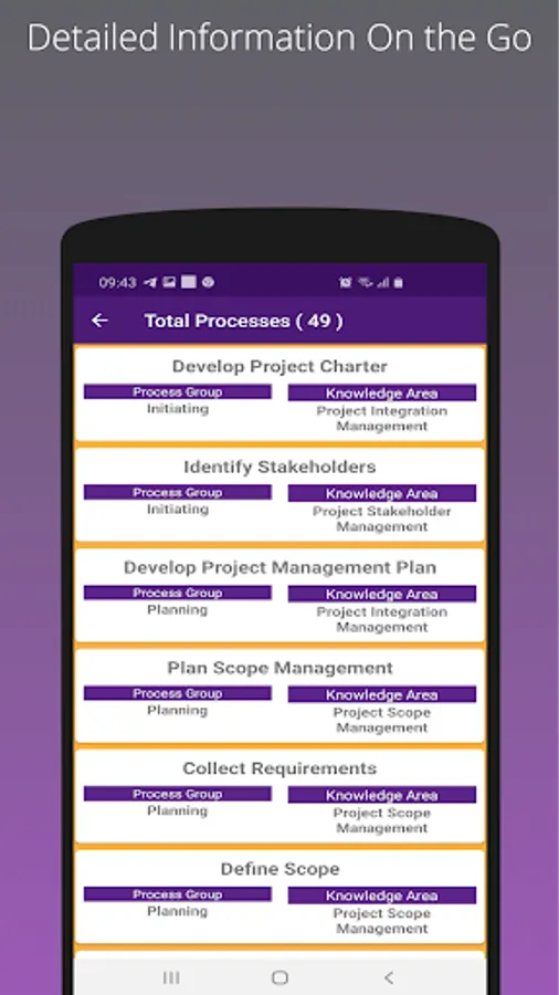 This light weight android app is loaded with complete information about PMP i.e. Project Management Professional – PMI Process Groups, Knowledge Area, Processes, Inputs, Outputs and Tools and technologies.
