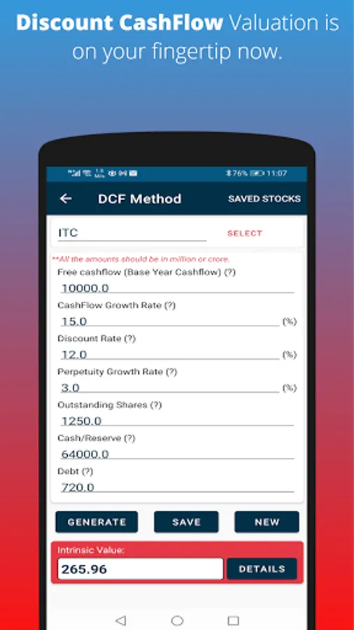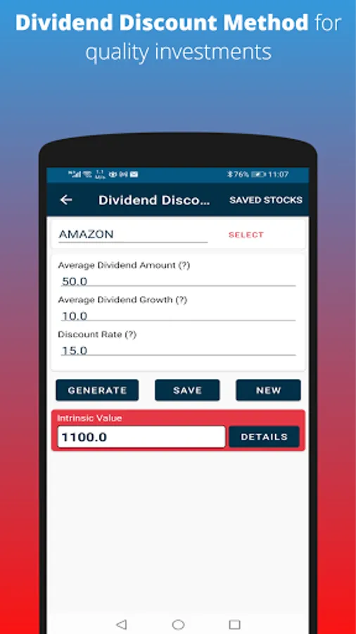 Smart Investor is an easy-to-use app - to find the stock's intrinsic value in simple steps and with minimum details.