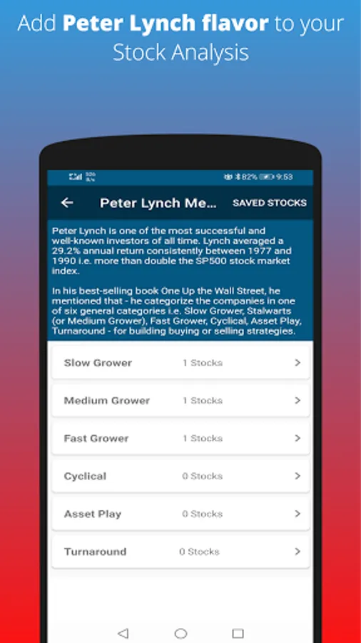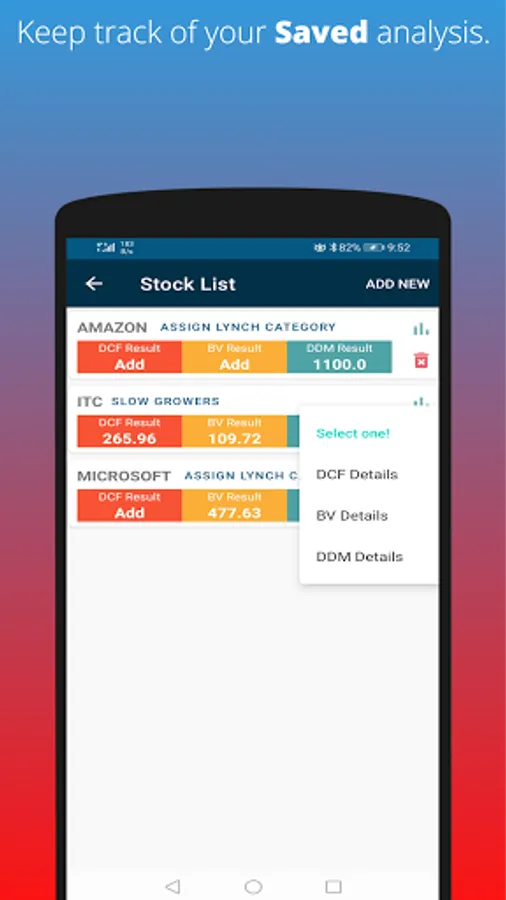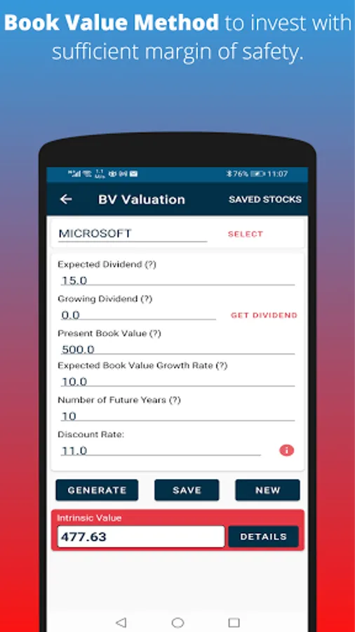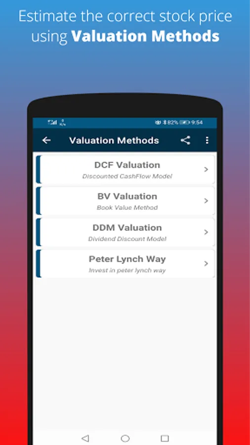 Smart Investor app is designed for normal people who don't have expertise in understanding the complexity of finance. You can use any or all of the following popular stock or security valuation method(s):