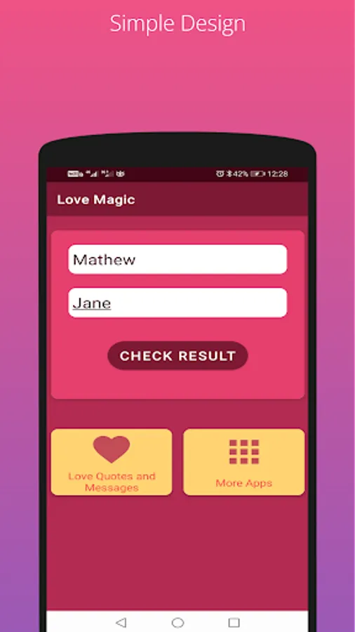 Love Magic - Real Love Tester is an amazing app to find out the love between two people based on the name matching algorithm.
