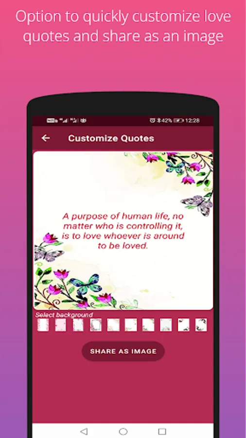 This app also allows the users to customize the quotes as per the needs and share the quotes with lovely background as an image.