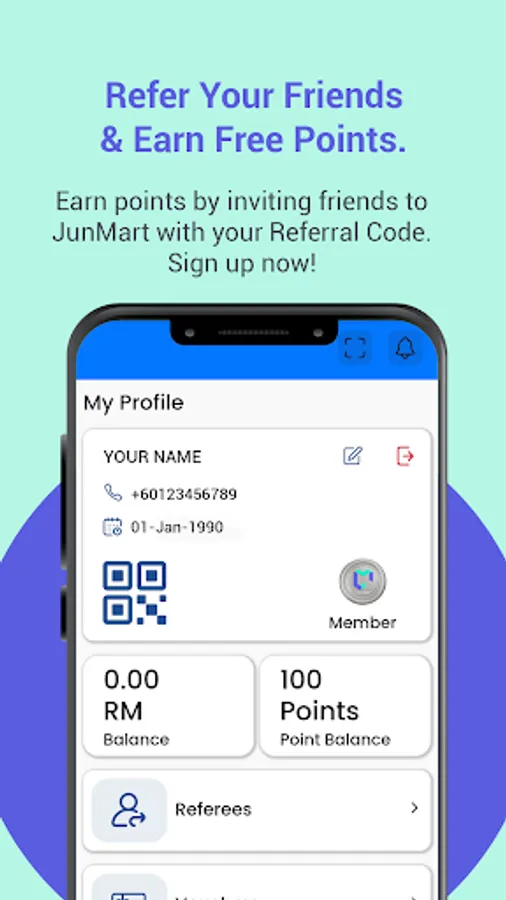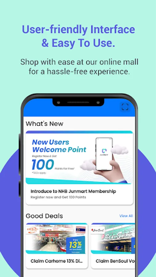 In today's digital age, online shopping has become an integral part of urban life. JunMart is a mobile application that combines online and offline marketing to reward users with bonus points that can be redeemed for products. We have integrated our current offline sales network data into the application to incentivize our members with bonus points based on their respective sales.