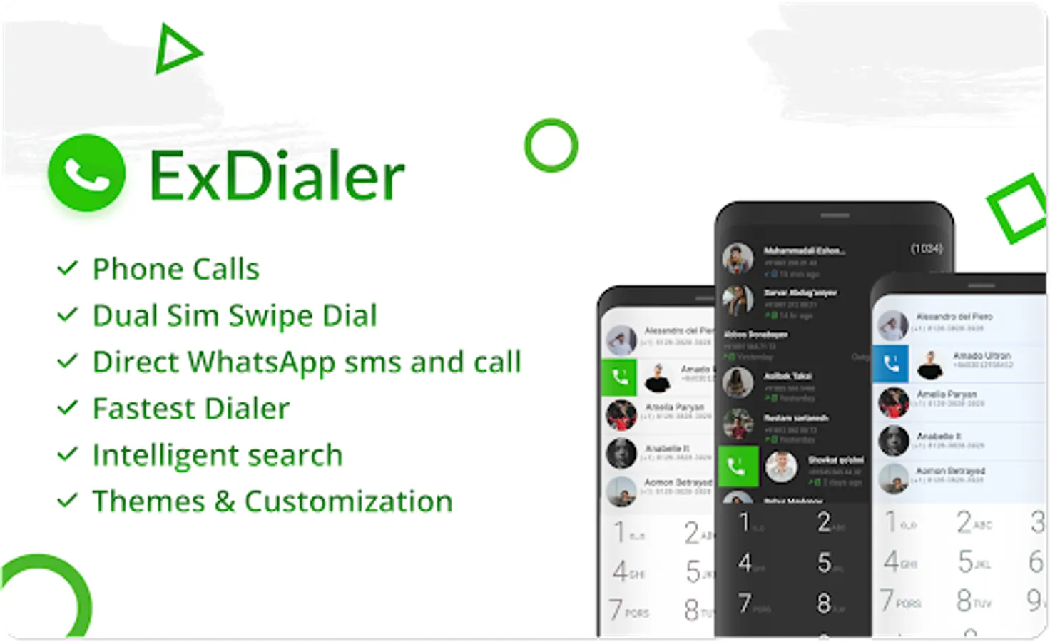ExDialer - Phone Dialer App is here to ensure you manage your random calls, Direct WhatsApp chat & calls without saving numbers with Swipe Dialer. This Phone app is providing T9 Search, Speed Dial, unlimited themes, fonts, and languages. Smart Phone Dialer is a magical Dial pad and has outstanding features, that are developed according to the user's needs. After using you will forget your traditional Dial pad. Phone Calling App is a reliable contact manager and works faster than others. Dialer & Contacts pad is Easy to use and provides plenty of unique key features such as