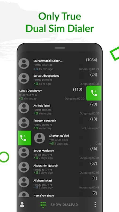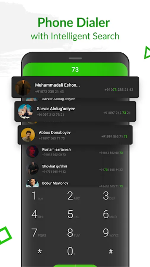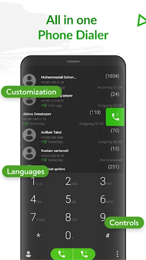 ➤ Fastest and most intelligent contact search, recent or frequent calls, check history, everything on just a simple single screen.