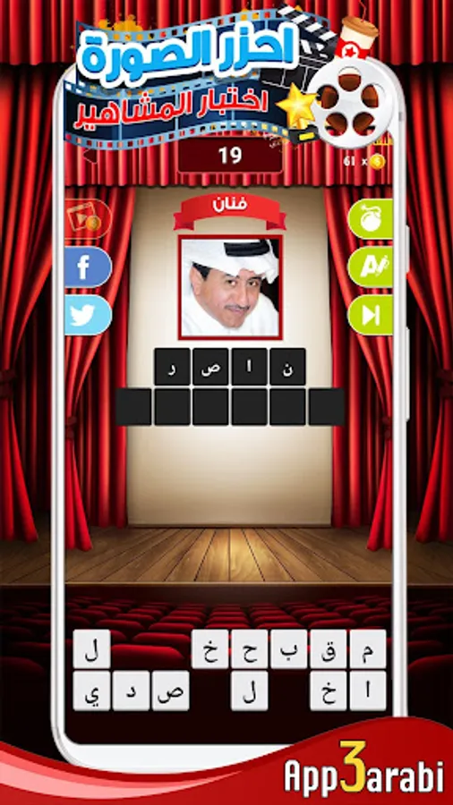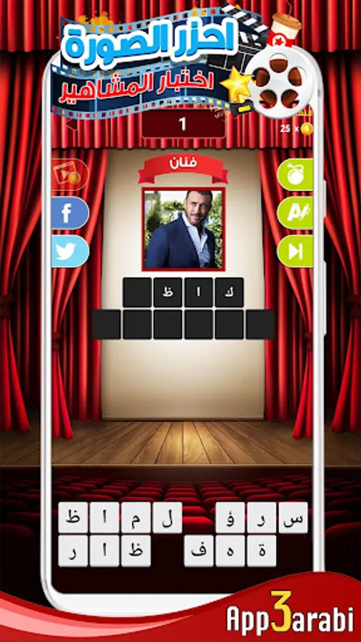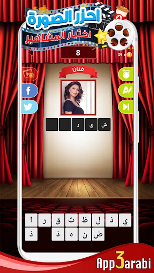 اللعبه تمكنك من اختبار معلوماتك الفنية واختبار قدرتك على التعرف على صور اشهر الفنانين و الافلام و المسلسلات العربية