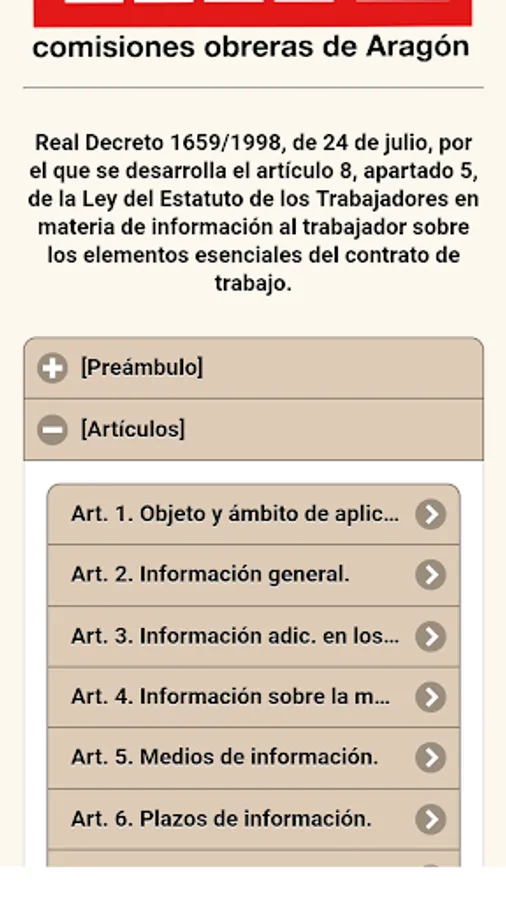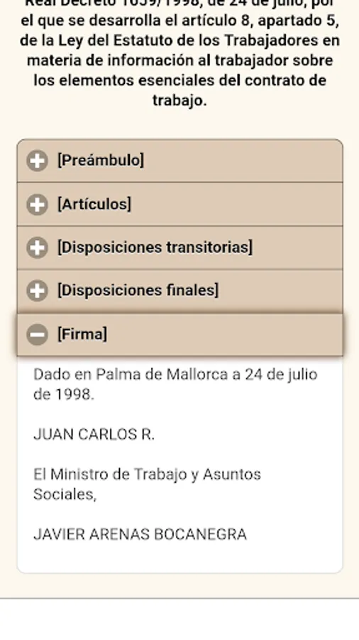 Royal Decree 1659/1998 of 24 July, which develops Article 8, paragraph 5, of the Law of the Workers' Statute on worker information on the essential elements of the employment contract.