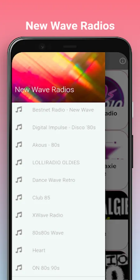 New Wave Radio you want to listen to the radio because with this application you can listen to more than 28 radio stations online on your phone from anywhere in the world live for lovers of the genre