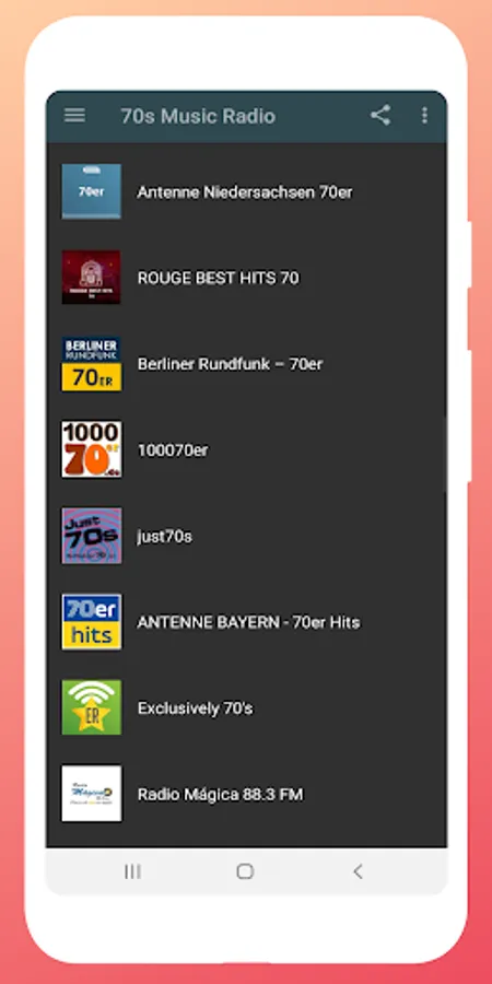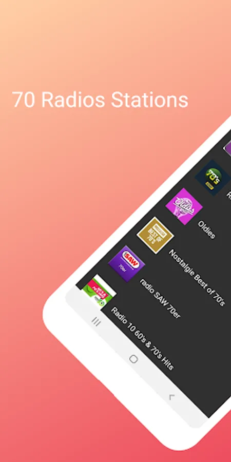 70s Music You want to listen to the radio because with this application you can listen to over 65 radio stations online music on your phone from anywhere in the world live for fans of the genre