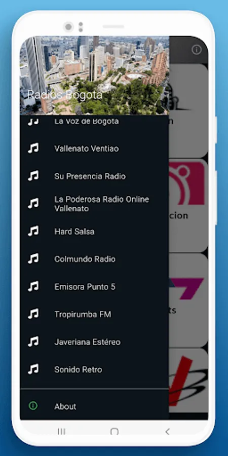 Emisorass de Bogota want to listen to radio because with this application you can listen to more than 60 stations online on your phone from anywhere in the world live