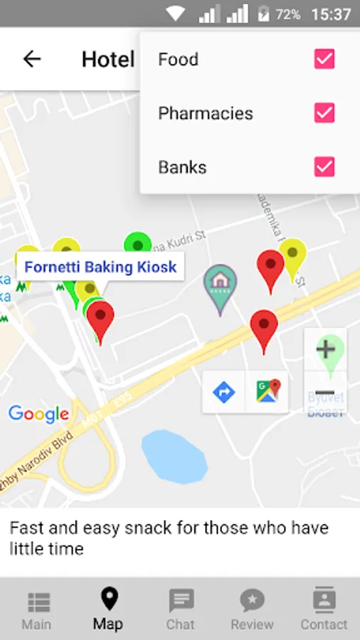 3. Navigation on interesting and useful places near the accommodation using a map: recreations, places of interest, vital objects, sightseeing routes, etc.