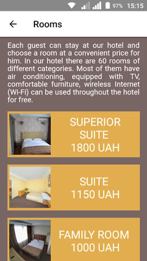Now, all the accommodation services and facilities are in one place. It is convenient to study them, choose and order the service you like or the facility you need.