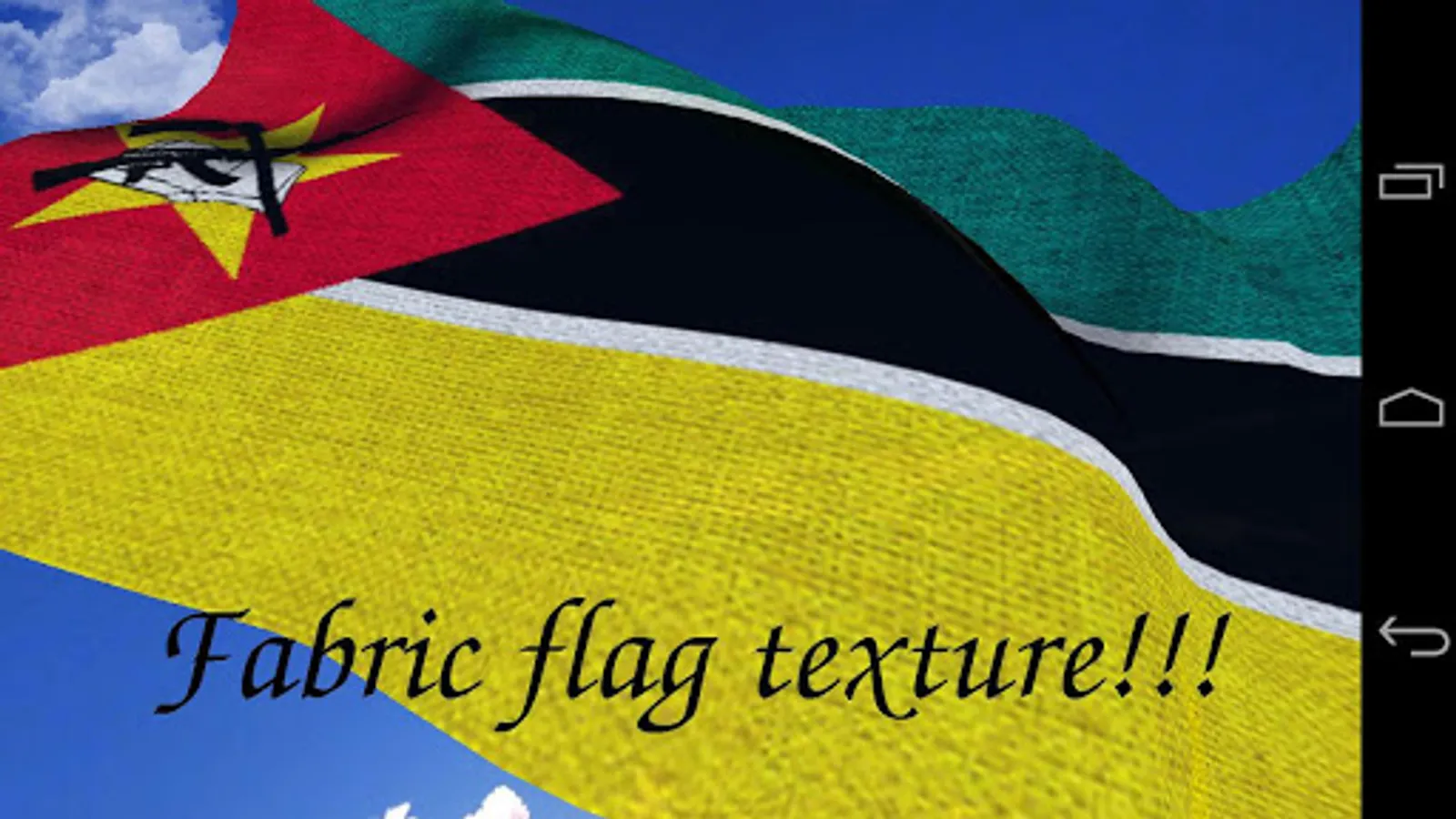 Basic info of Mozambique flag for educational purpose, and a Mozambique flag live wallpaper.