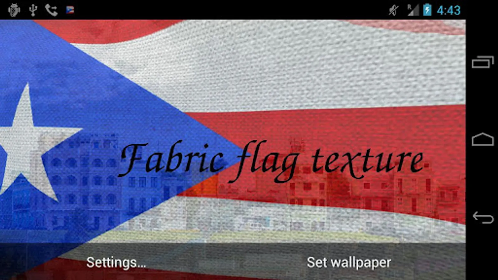 Explore the cultural significance of Puerto Rico flag with our Puerto Rico Flag Live Wallpaper app! Experience an interactive journey into the symbolism and design of the Puerto Rico flag right from your Android device. Dive into learning or simply appreciate the dynamic motion of this iconic flag on your home screen. Our app offers a range of features designed to enhance your understanding and customization options.