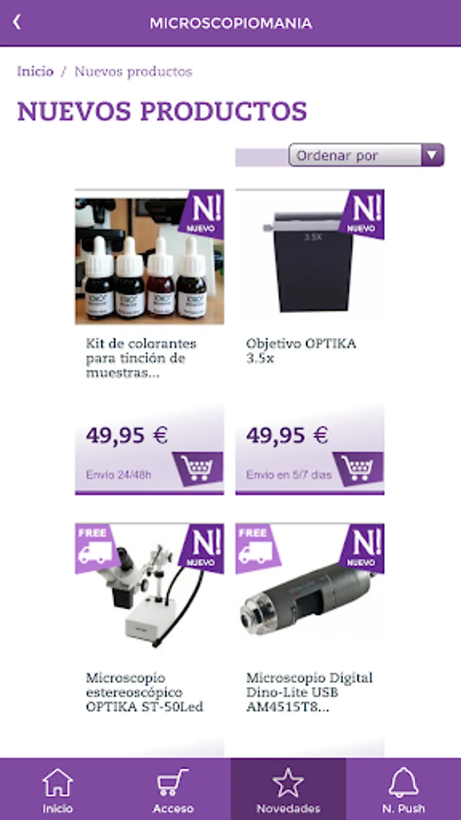 If you are looking for educational material, in our store you can find microscopes, biological microscopes and stereo microscopes designed to offer maximum performance in educational applications, making them ideal for schools, colleges and universities. If you work in a laboratory, factory, workshop or research center, Microscopiomania also has laboratory microscopes, biological and stereoscopic being manufactured specifically for use professionally. These microscopes besides having excellent quality, are also very versatile performing at maximum in different applications, thanks to the accessories that are available to them and you can find in our website. If yours is linked to dermatology or aesthetics, here your perfect for dermatological applications electron microscope, haircare and damage assessment in the dermis. Although these devices are designed for this area, they can also be used in other sectors as diverse as the restoration of works of art or graphology inspection. Another Microscopiomania categories is linked to the tasks of inspections of the production line, quality controls, evaluations by experts and other applications in the industrial sector. And if you simply microscopy is your hobby, also in our website the equipment that best suits what you're looking.