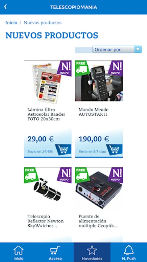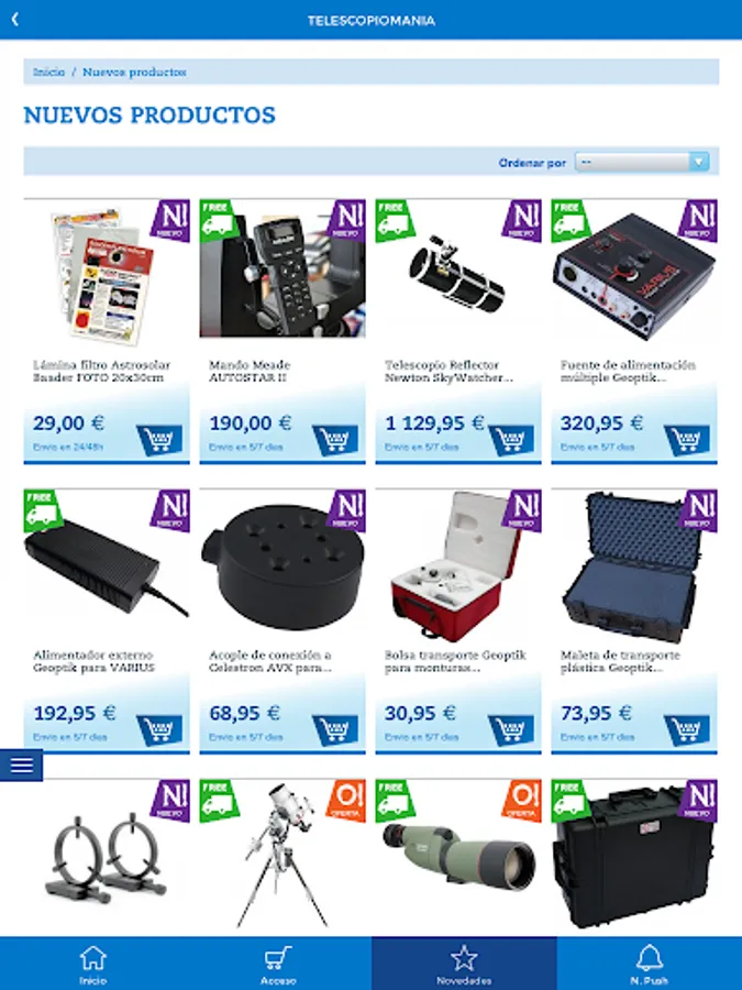 Telescopiomania is the biggest online store in Spain dedicated to astronomy, ornithology, microscopy and meteorology. On our website you can find a variety of specific material at the best price.