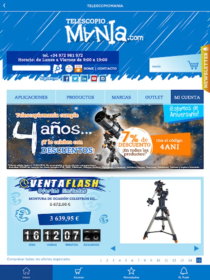 Besides all this, in Telescopiomania you can always enjoy exclusive discounts, deals and coupons. Do not miss our online shop and enjoy your astronomy hobby with one click.