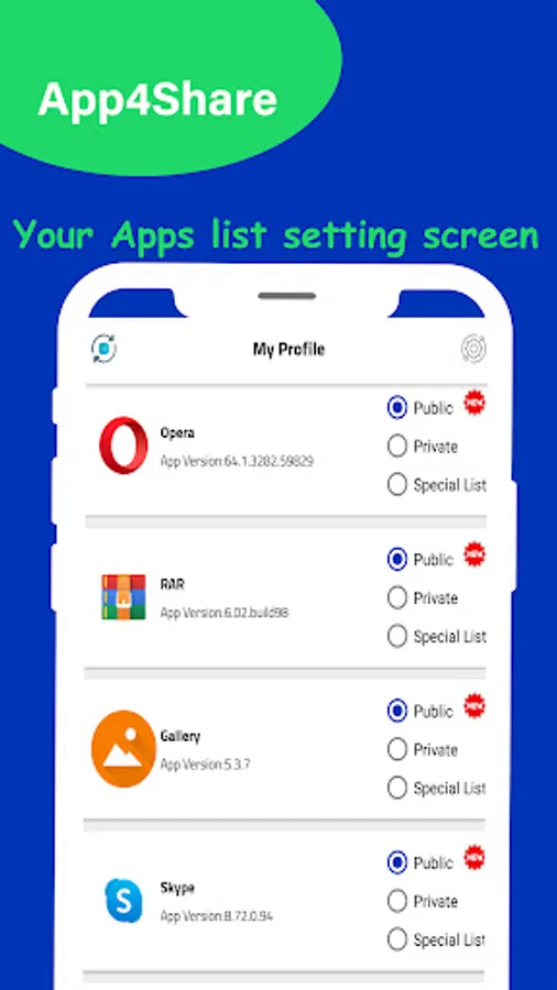 Keep your app lists organized by creating private and public app lists. With App4Share, you can easily share these lists with friends and discover their favorite apps too.
