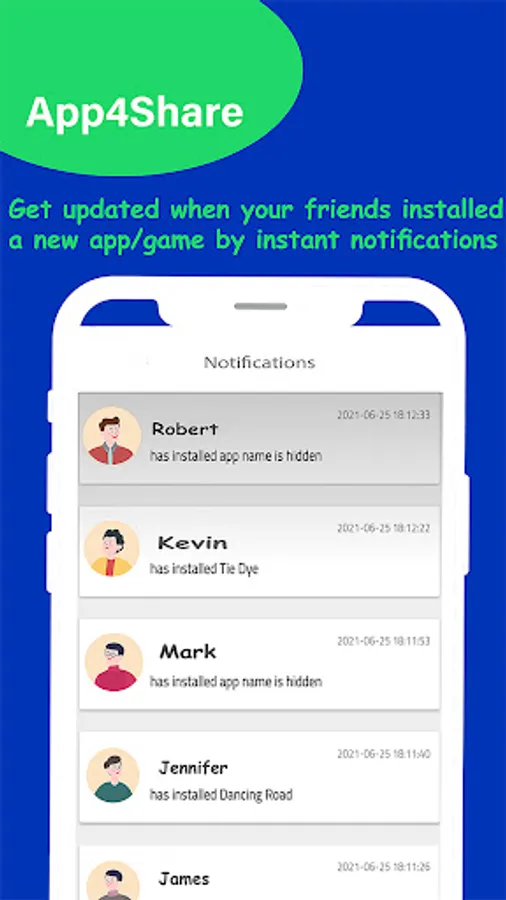Stay up-to-date with your friends' app activities. **App4Share** will notify you when your friends install new apps, ensuring you never miss out on the latest trends.