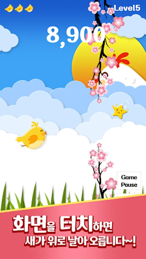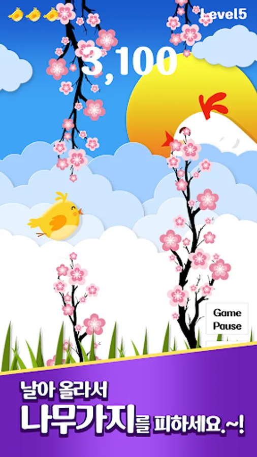 Touch the screen to prevent flying bird from getting caught on tree branches.