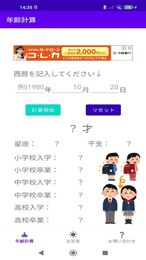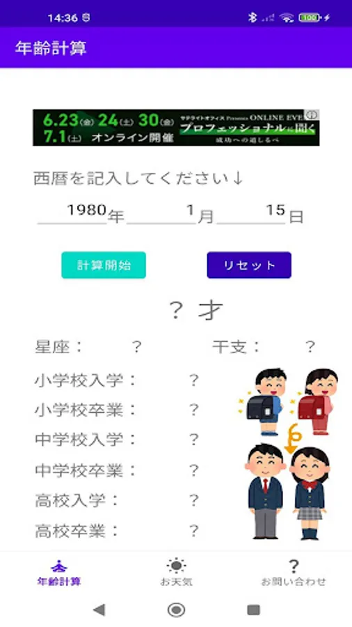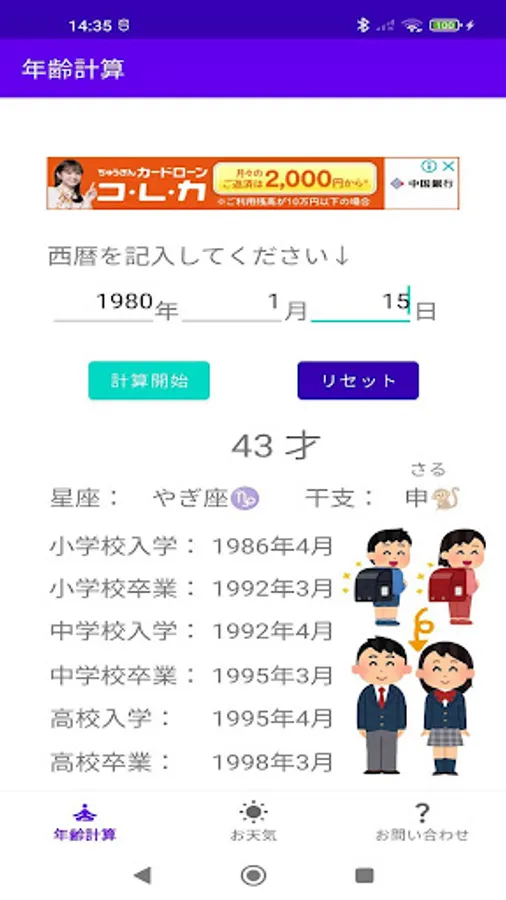 You can check your age, zodiac sign, sexagenary cycle, as well as the year of admission and graduation from elementary school to high school just by entering your date of birth in the Western calendar. You can also check the weather of the whole country with this application. The good thing about this app is that you can check it out at random times!