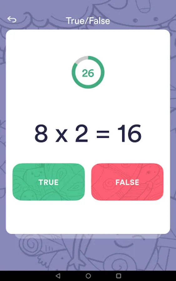 ● True/false module - You choose whether the given result of the operation is true or false. You will have to provide the correct answer (product or quotient) within several seconds. The time test is a very good way to master the multiplication and division tables.