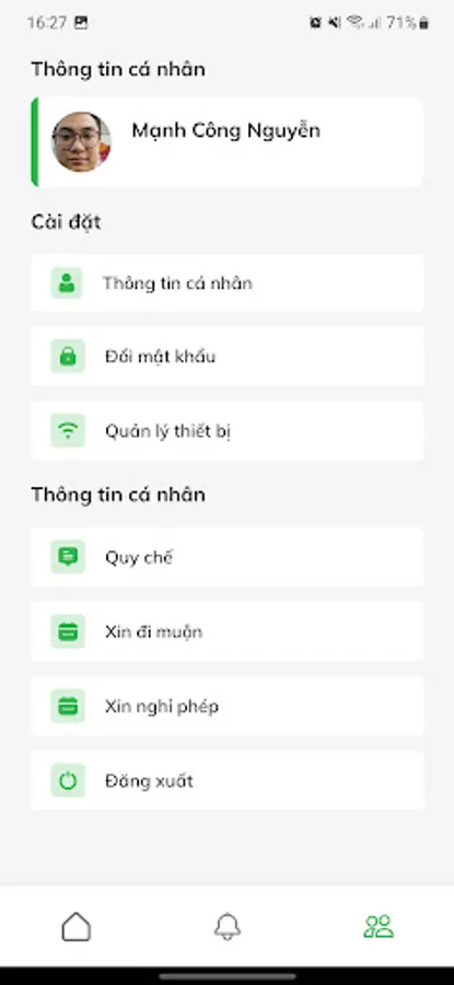 + Employees must connect to the network system at the company to be able to perform attendance (cannot take attendance by personal network, 3G, 4G, 5G ...)