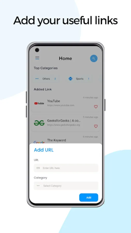 1. Easy Addition: Click on the "Add" button, paste the link, assign a category, and save – it's that simple!
