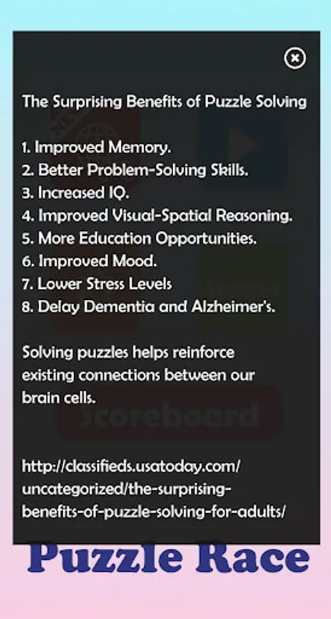 Solving Puzzles helps reinforce existing connections between brain cells.