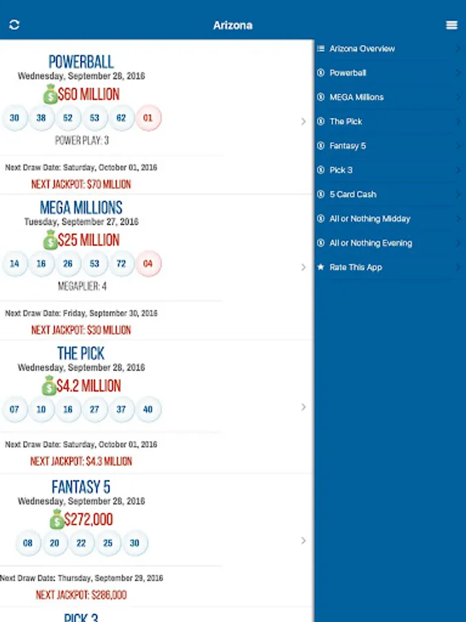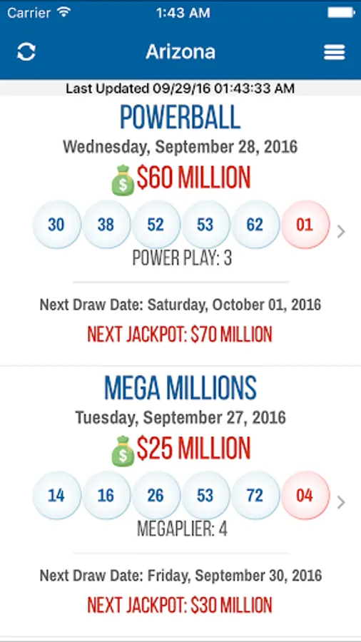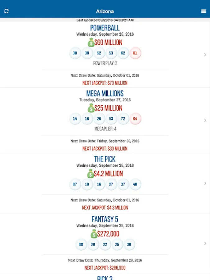 Arizona Lotto Results for AZ Lottery Games. Easy and Fast Lottery Jackpots, Winning Numbers, Draw History, Payouts and Prize Levels for Powerball, Mega Millions and all other State Lottery Games.