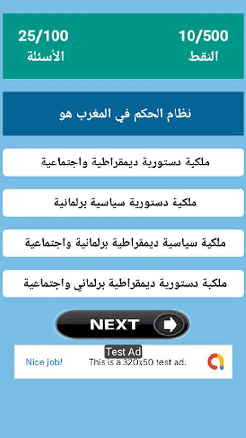 The application contains 400 questions and answers extracted from previous exams to ensure success