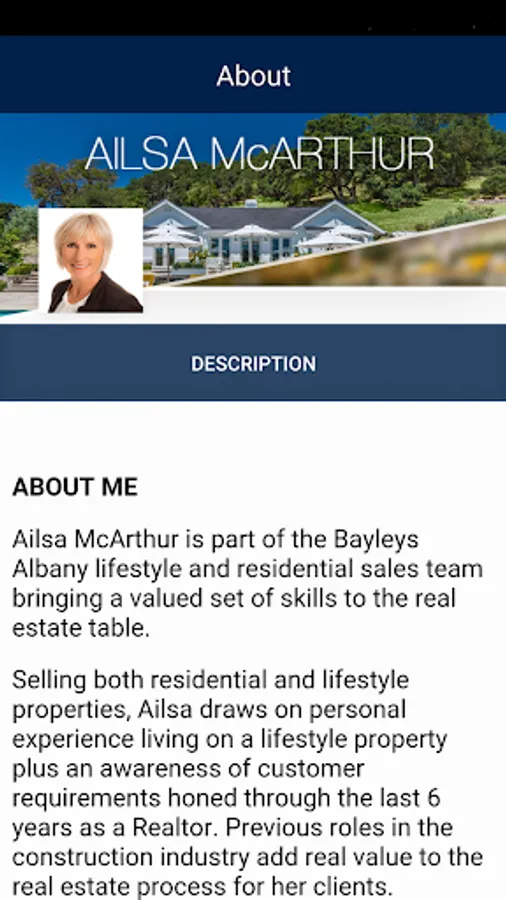 Download the app today to view more details on the highly qualified and very professional real estate agent Ailsa McArthur at Bayley’s real estate: