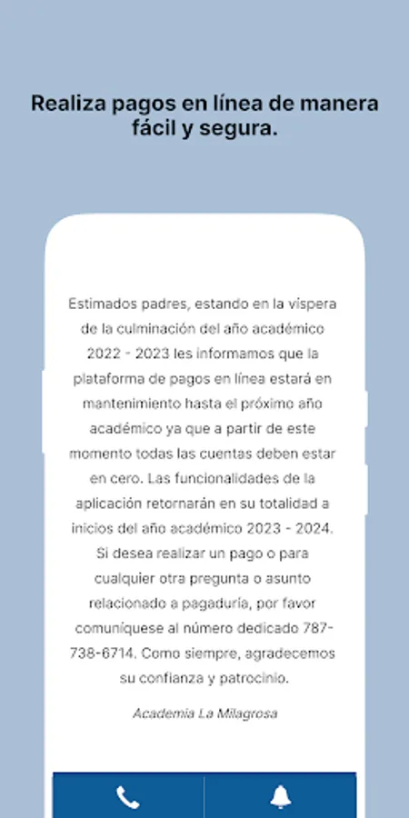 Descargue la aplicación oficial de la Academia La Milagrosa de Cayey y manténgase al tanto de todas las noticias y eventos. Reciba los comunicados internos, visualice y descargue nuestro calendario, realice pagos en línea etc. La Milagrosa APP es el centro de todo lo relacionado a la Academia La Milagrosa de Cayey.