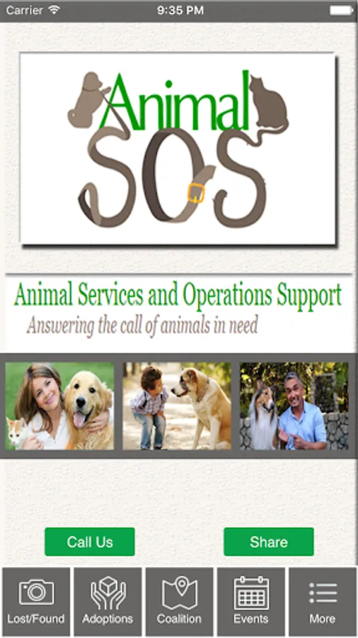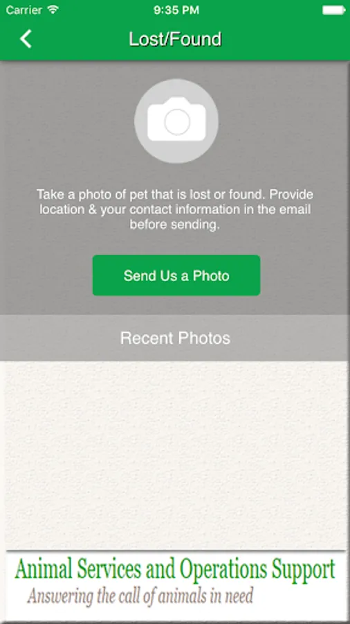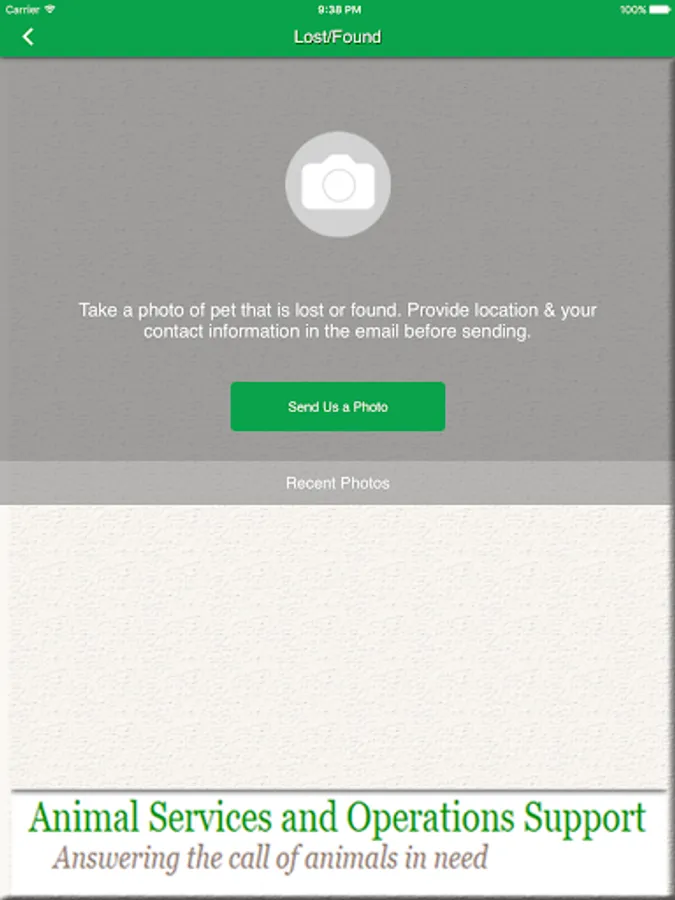 - Lost/Found allows app users to take a photo of a lost or found animal and send it to Animal SOS