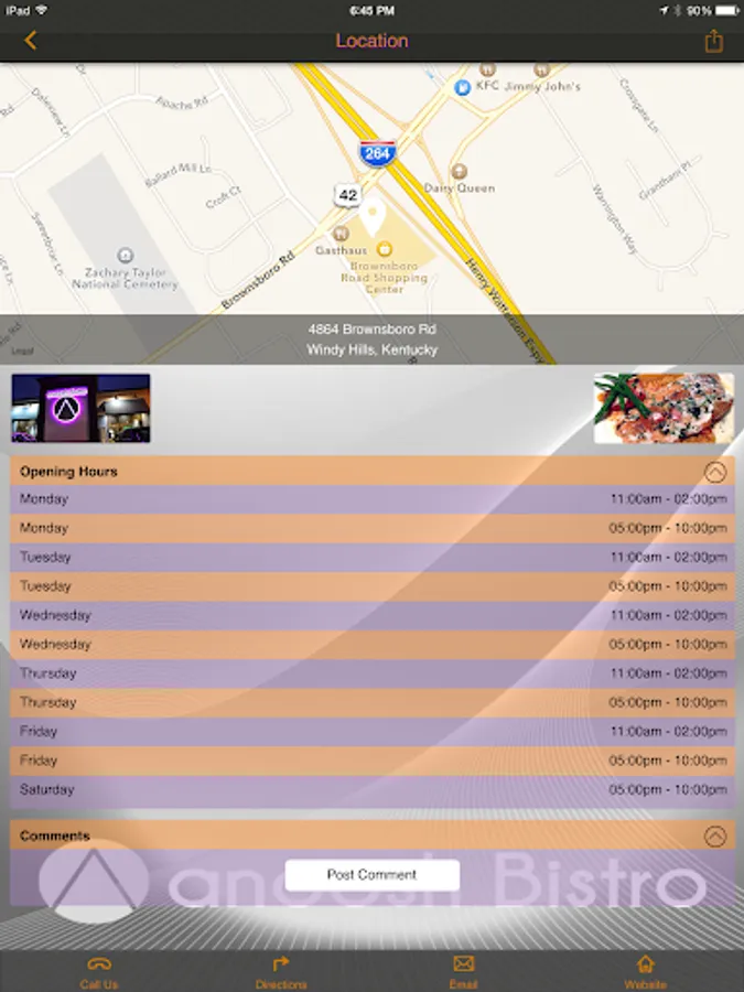 Anoosh Bistro offers full service bar, lunch & dinner at 4864 Brownsboro Rd.