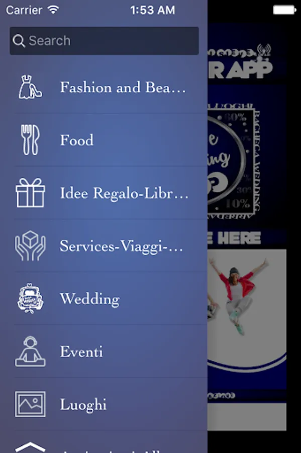 In our app you can find areas dedicated to fashion, to food, to Services, Weddin etc ...