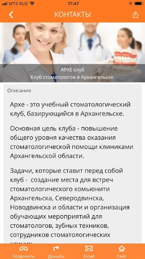 The tasks that the club sets itself are to create a meeting place for the dental community of Arkhangelsk, Severodvinsk, Novodvinsk and the region, and to organize training events for dentists, dental technicians, and staff of dental clinics.