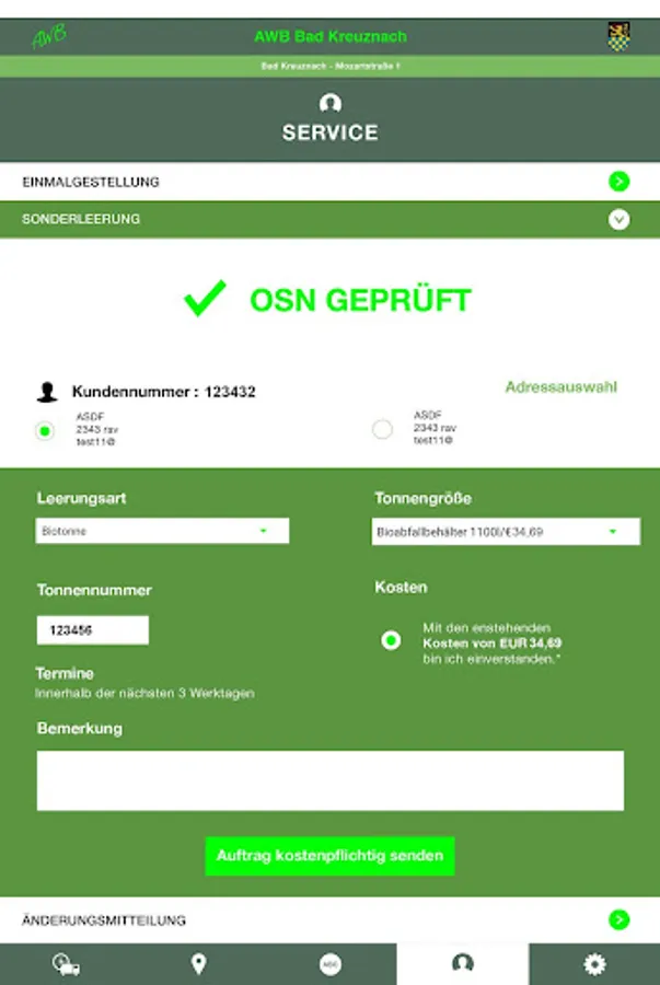 The service options offer the possibility of direct communication with the waste management company. Simply apply for an online service number and use the service offers of the AWB: One-time deliveries, special emptying, replacement bins and notifications of changes can be done conveniently via the app.