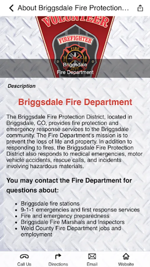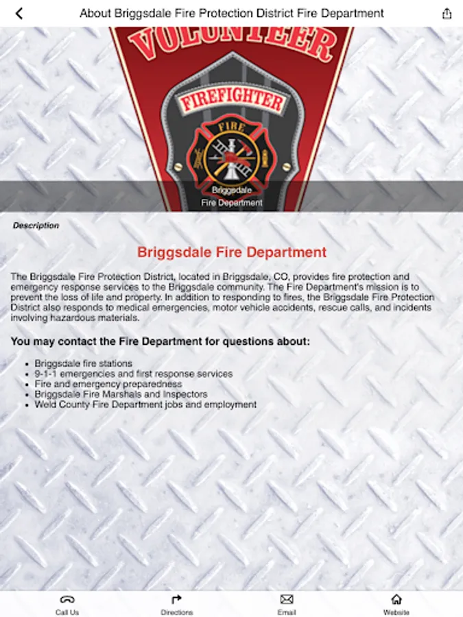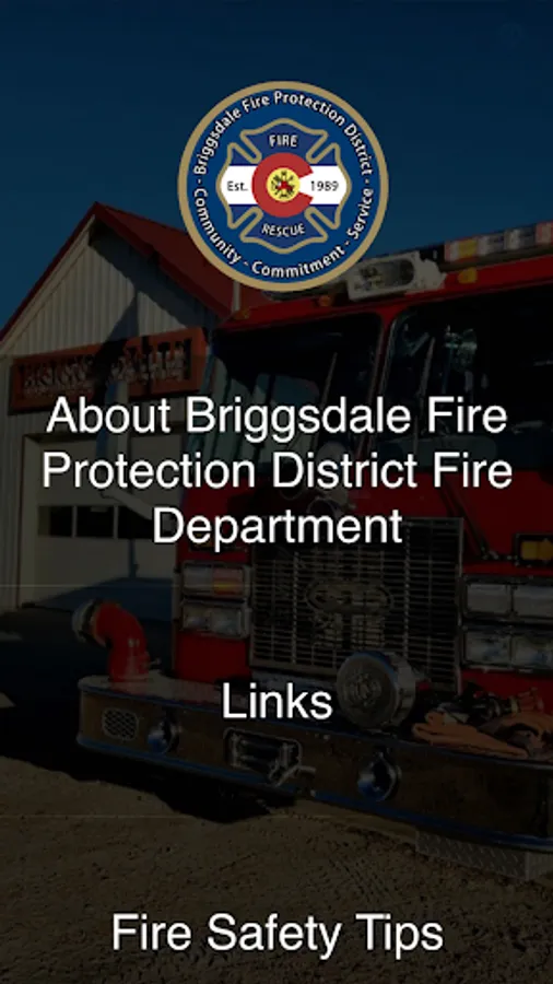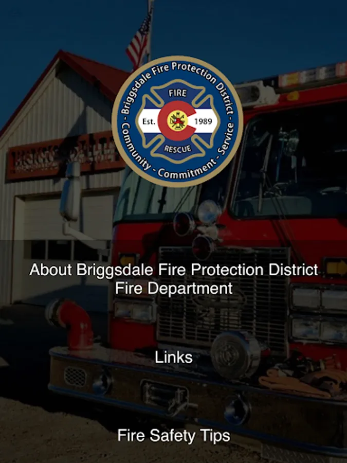 On behalf of the Briggsdale Fire Protection District, welcome to our app. This app is for the employees and family members of the Briggsdale Fire Protection District as well as the community it serves. It contains information about our department as well as fire and safety tips. Briggsdale Fire Protection District employees will have access to a full range of wellness tools.