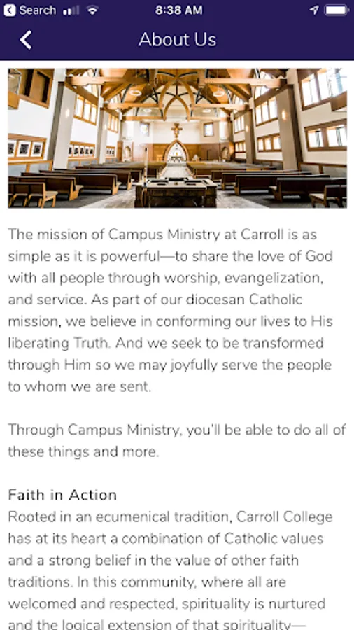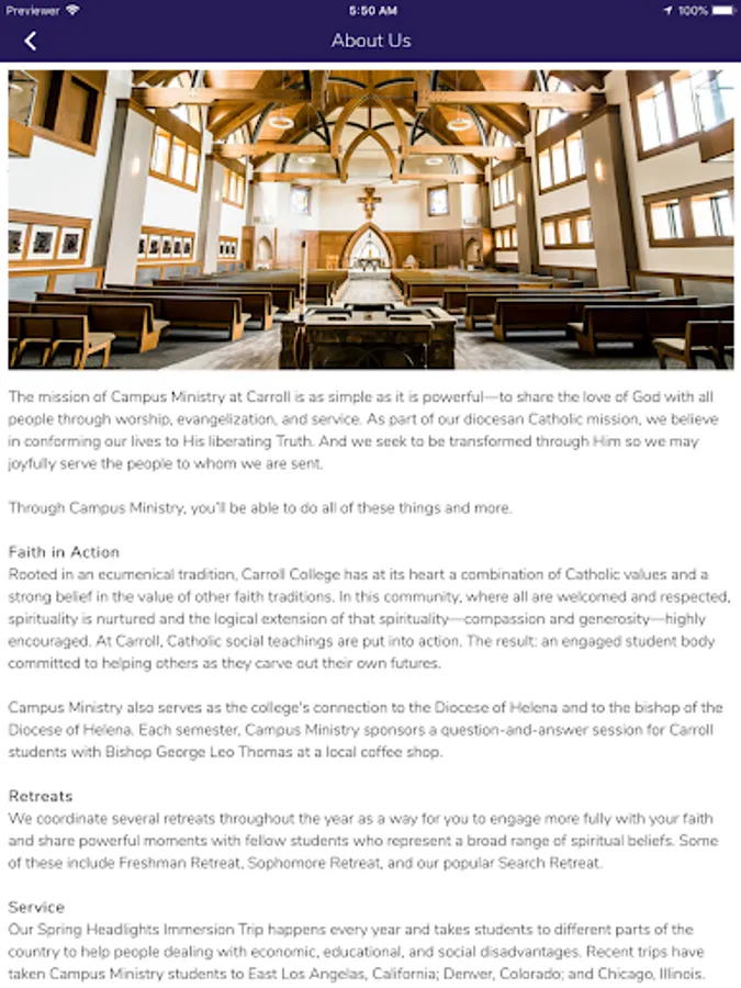 The Carroll Campus Ministry for Carroll College mobile app is packed with features to help you pray, learn, and interact with the church community.