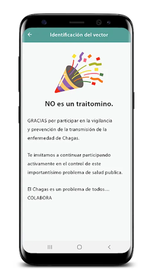This application is the product of more than 20 years of community work on surveillance, prevention and control of Chigas disease in risk areas for vectorial transmission (by insects), with the aim of providing a simple methodology to simplify and massify the Basic knowledge at the community level about the vectors that transmit Chagas disease, already standardized and tested by the implementation of an epidemiological surveillance system based on community participation and the educational community identified as Triatomine Notification Posts (Benítez, et al; 2007). located in schools in at-risk communities.