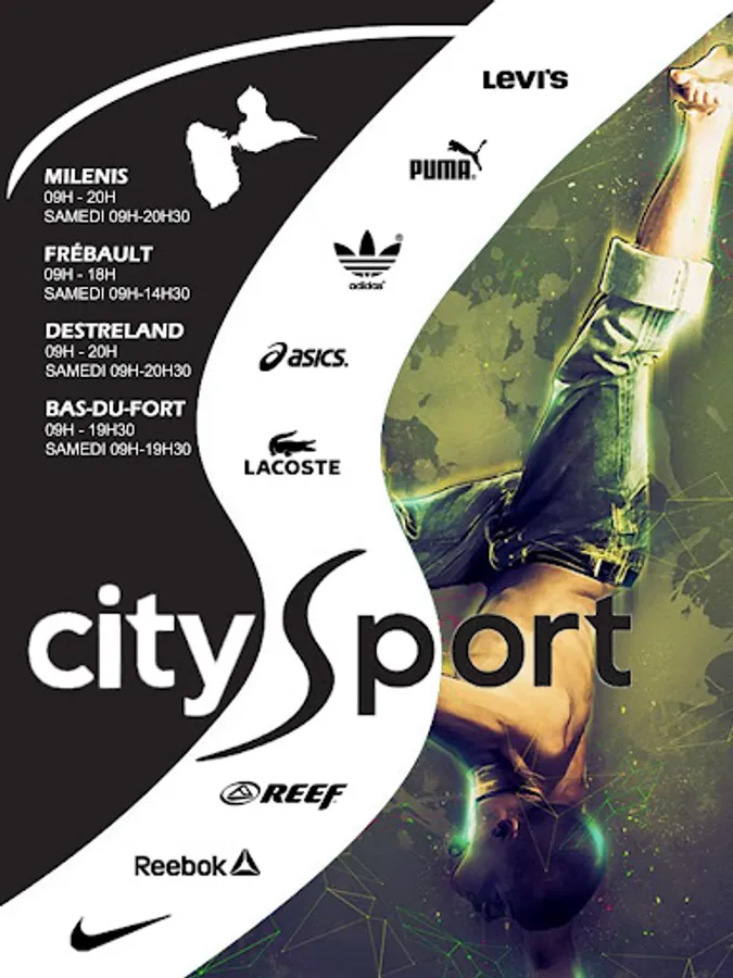 Download it now for free and earn 5 € instant discount in your Citysport Guadeloupe! ..