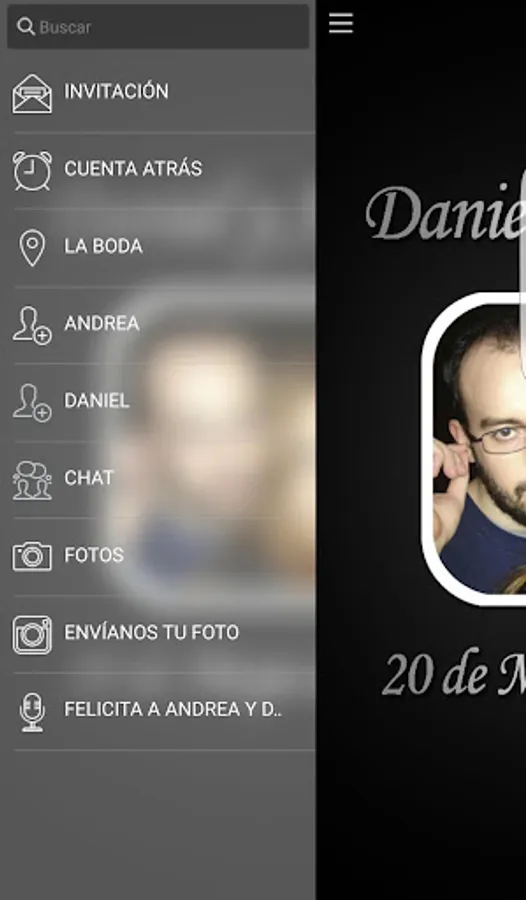 Andrea and Daniel have prepared this app WEDDING PARTY for all your guests, who will provide them a password so they can access content and participate with them in the wedding of a close and fun.