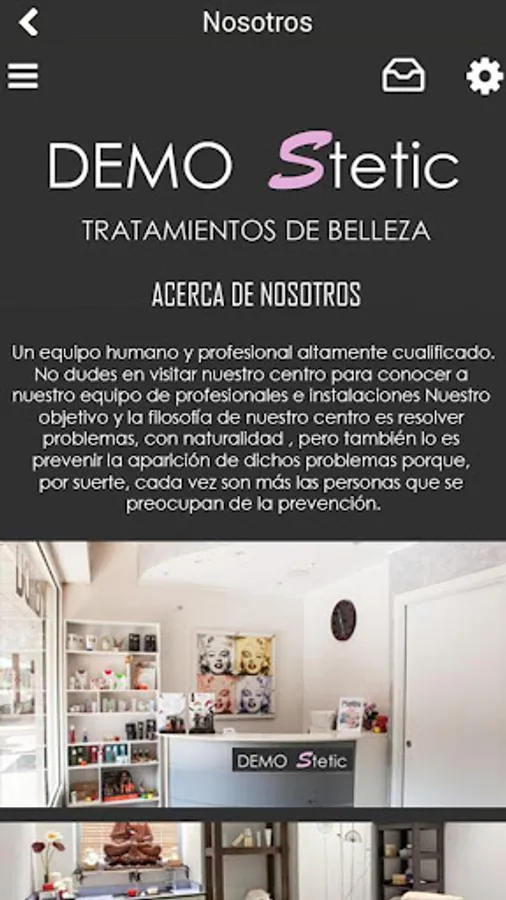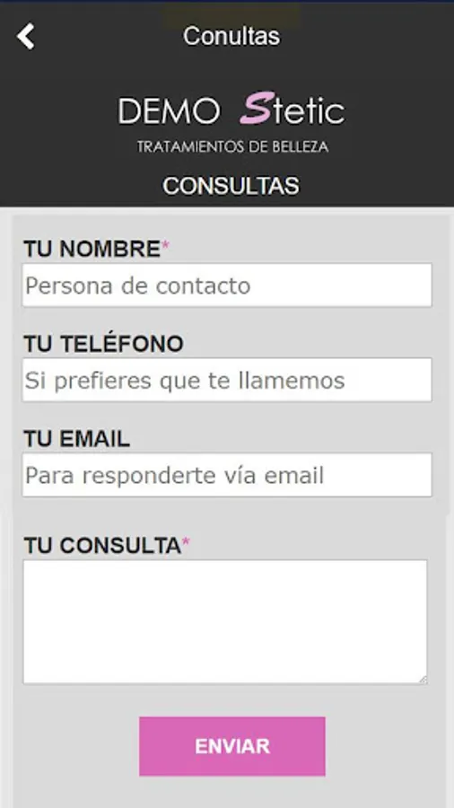 APPLENTY Demo APP Stetic is ideal for mobile application Beauty centers, clinics, salons, etc. We adapt the appearance of the APP