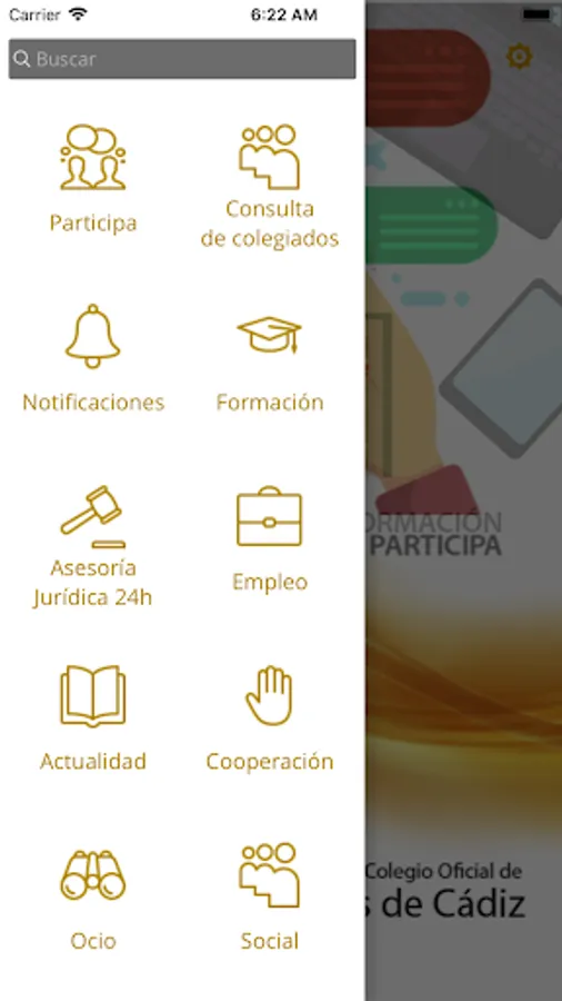 The APP COMCADIZ is presented as a tool available at any time and place, committed to bringing the main services of the College and entrenches fully integrated with other media in the communication network of COMCADIZ participatory aspect of the members.