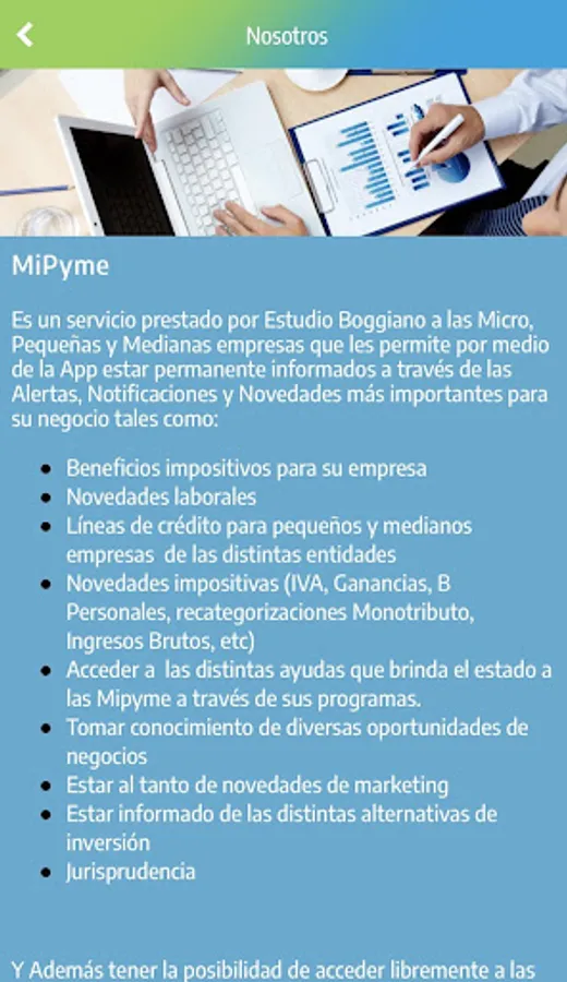 MiPyme is a service provided by the Boggiano Studio to Micro, Small and Medium Enterprises that allows them through our App to be permanently informed through the most important Notifications and Alerts for your business.