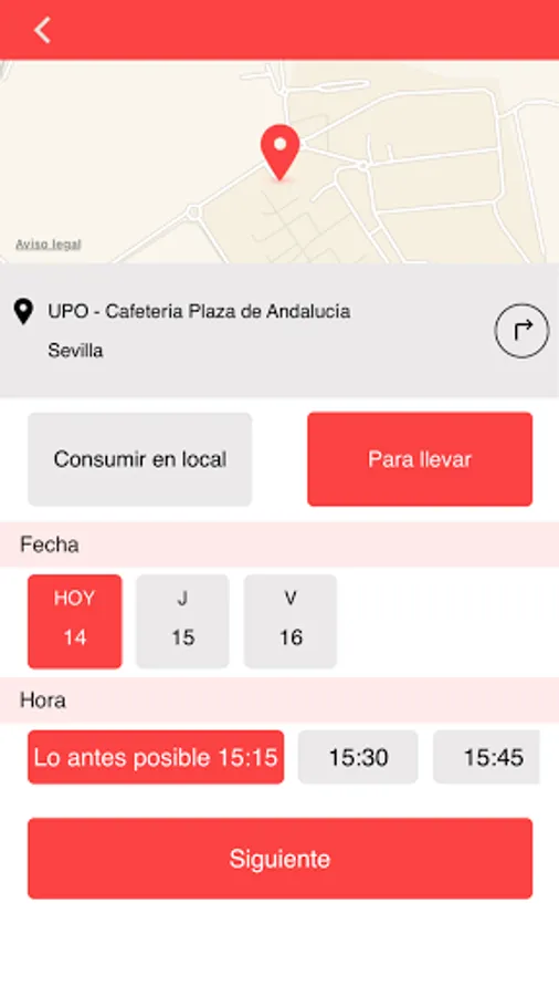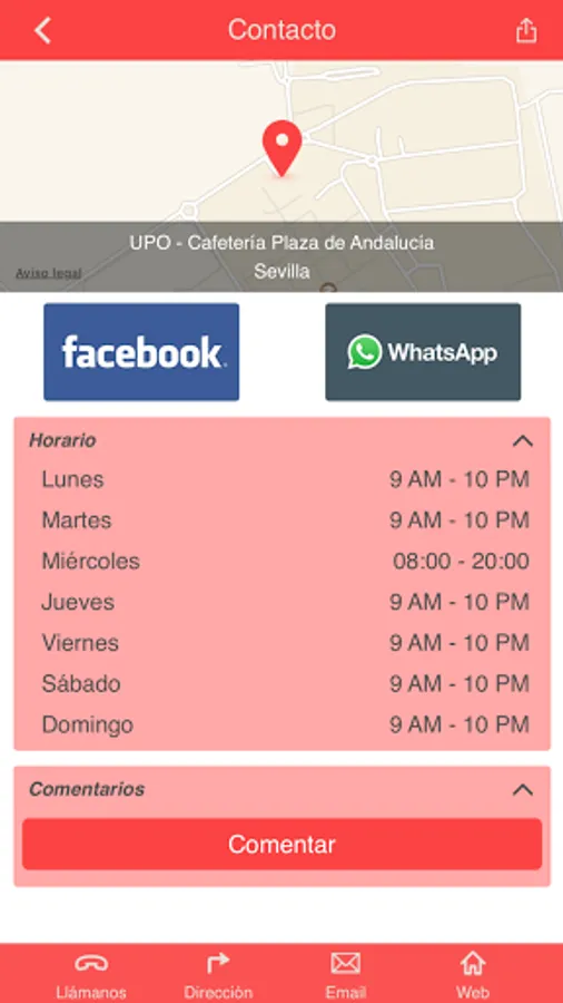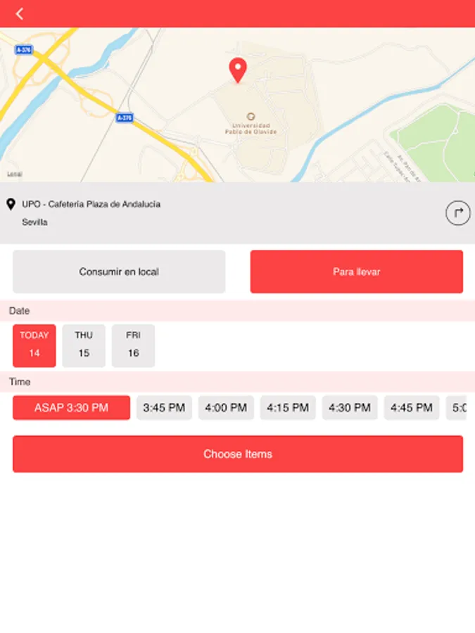 This cafeteria is a kiosk-bar located in the Plaza Andalucía of the campus, next to a wooded area equipped with picnic areas, it serves breakfast and lunch based on fast-made dishes, it is specialized in the preparation of pizzas.